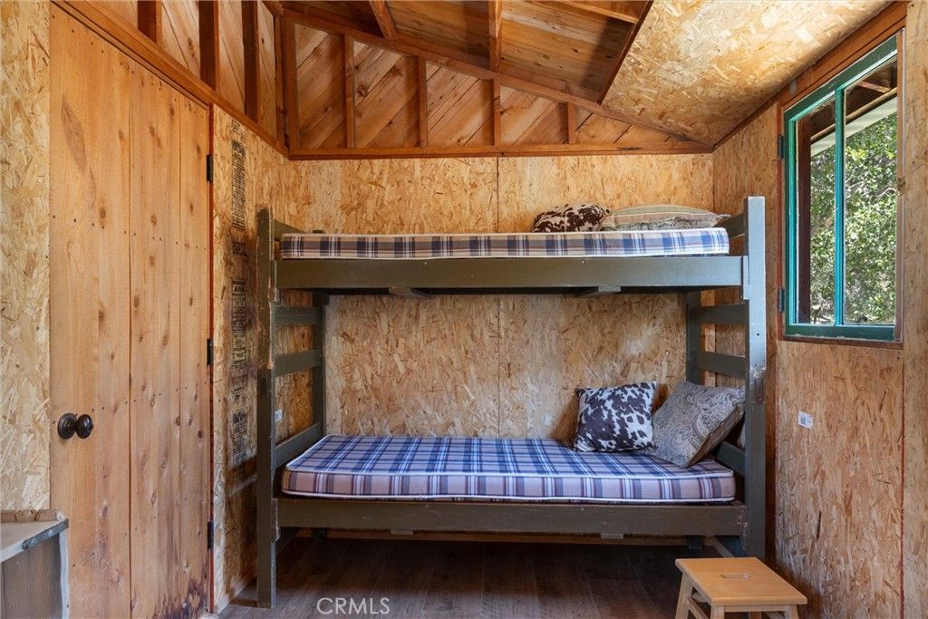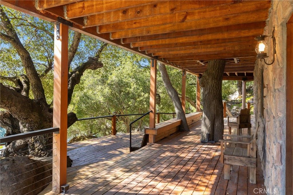 Experience the privacy, character, and natural beauty of this furnished retreat fronting the Towne Creek branch of Lake Nacimiento. The 1 bedroom, 1 bath home features an open floor plan with a warm, lodge-like interior. Vaulted ceilings, stone-tile flooring, a spacious loft and a classic rock fireplace complete the classic rustic feeling. A spiral staircase leads to the loft overlooking the living room with room for several, while the bonus room tucked beneath the main floor and accessed via the lower deck provides additional options for sleeping, yoga or hobbies Surrounded by beautiful oak trees and dramatic rock outcroppings along the hillside, the property offers a peaceful nature-rich setting as emphasized by the trees growing through the decks and shading the home. A detached bunkhouse with its own bath sits on the lower driveway level, conveniently adjacent to the parking area with its accommodations for RVs. After entering the gated property (driveway is shared), you pass the steel garage building with room for boats, vehicles & additional recreational gear. With its creek-front location, rustic charm and a variety of spaces for enjoying the outdoors this privately sited property is a unique opportunity within the gated Running Deer Ranch community. And, best of all, a purchaser can obtain membership in the Dragon Dock LLC with slip #2 for your exclusive use! This is perso0nal property of one of the owners and will be handled separately and outside of escrow.