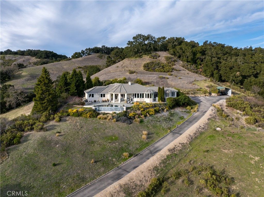 Perched atop a scenic hill with sweeping views of the Paso Robles countryside, Rancho Notso Grande is a rare 20-acre estate offering two homes"”ideal for multi-generational living. Surrounded by renowned vineyards and conveniently located near Paso Robles, Templeton, Cayucos, and Cambria, this property delivers the best of Central Coast living with space, privacy, and unforgettable views. The main residence is a beautifully designed single-level home currently operating as a highly rated AvantStay short-term rental. Thoughtfully laid out with an open-concept floor plan, vaulted ceilings, and a warm fireplace, the living space is filled with natural light and framed by panoramic vistas. The kitchen is designed for gathering and entertaining, featuring double ovens, a Dacor warming drawer, custom cabinetry, a walk-in pantry, a temperature-controlled wine room, and a solar tube for added light. The primary suite serves as a peaceful retreat with abundant light, a generous closet, and a spa-like bathroom with soaking tub and separate shower. Three additional bedrooms provide comfortable space for guests or family. Step outside to resort-style living with an expansive patio, infinity-edge pool, hot tub, and built-in gas BBQ"”all positioned to take in the rolling hills and vineyard-dotted landscape. The home is equipped with solar, Tesla battery backup, and a whole-house generator for efficiency and peace of mind. The second residence, located at 4344 Shadow Canyon, has been tastefully updated and features 3 bedrooms and 2 bathrooms with modern finishes. Highlights include stainless steel appliances, stone countertops, soft-close cabinetry, and a spacious primary suite with walk-in closet, outdoor access, and updated en-suite bath. Additional features include a bonus room off the garage, oversized indoor laundry, and its own electrical meter with Tesla battery backup. The grounds are equally impressive, featuring landscaped areas, fruit trees, and a fenced grass yard at the second residence with vinyl fencing. The full 20 acres are cross-fenced, enhancing functionality for a variety of uses. Additional highlights include covered patios, a covered RV area, and a golf cart garage"”adding to the property's versatility. Whether you're looking for a private retreat, family compound, or income opportunity, Rancho Notso Grande offers a unique opportunity to enjoy the Central Coast lifestyle.