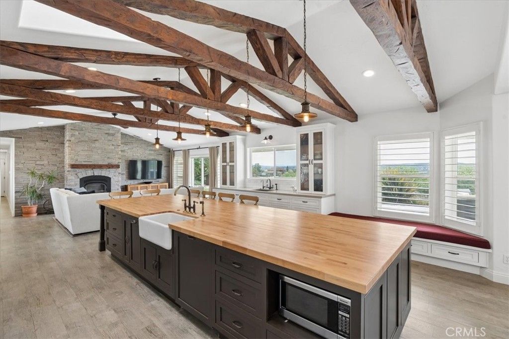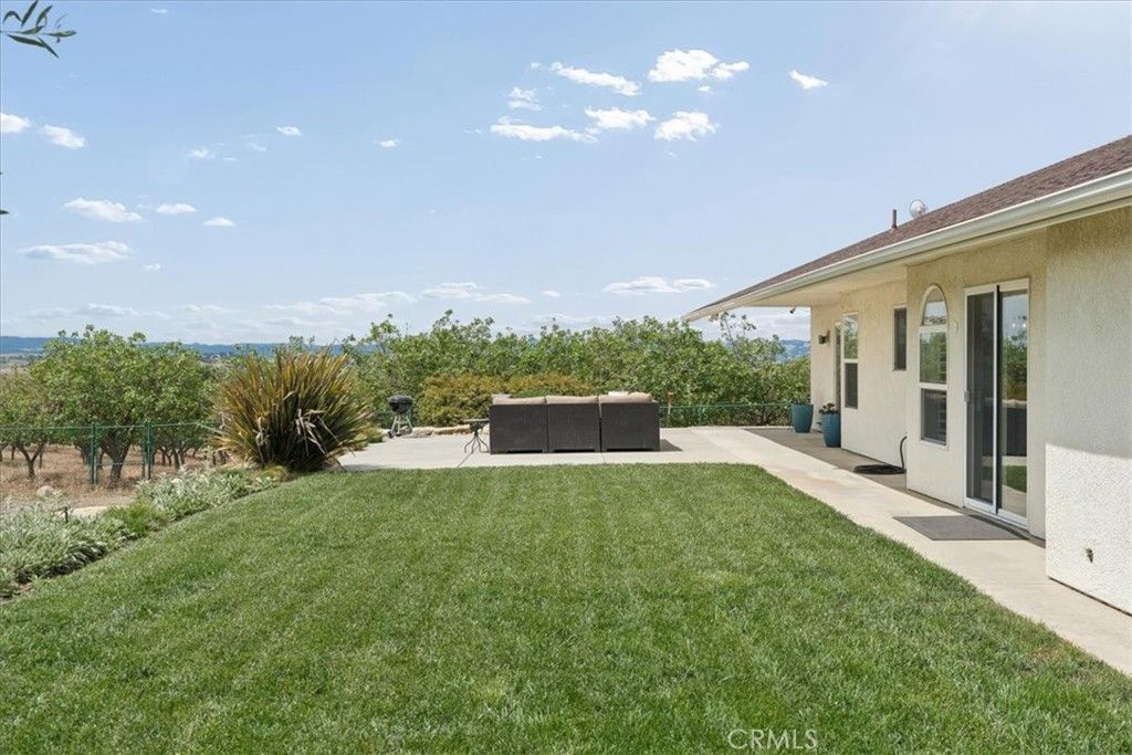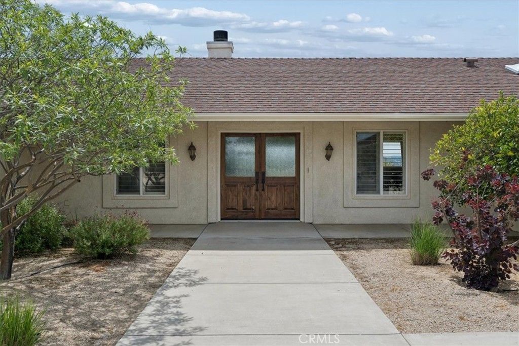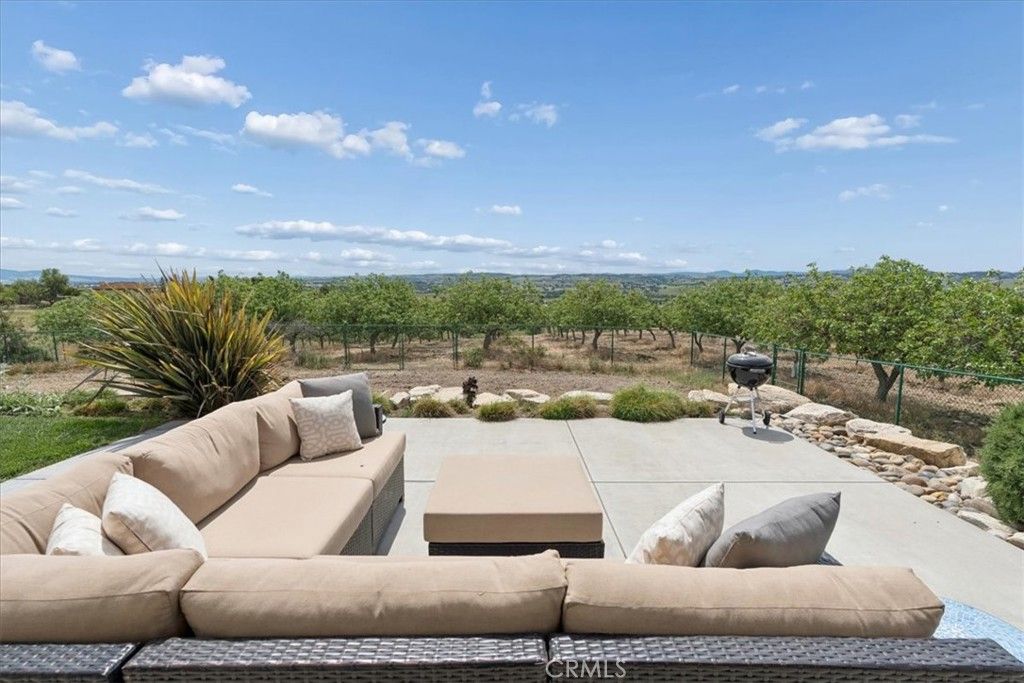 Stunning panoramic views and refined country living define this exceptional single-level estate on a picturesque 10+ acre hilltop parcel just minutes east of Paso Robles. The open-concept ranch-style home is designed for comfort and entertaining, with the living room, dining area, and kitchen flowing seamlessly together around a striking custom 20-foot island. The kitchen is further enhanced by a Viking range, while a wood-burning fireplace adds warmth and charm to the living room. Expansive windows frame the surrounding landscape and capture breathtaking views from nearly every room. The spacious floorplan includes three bedrooms, an office, bonus room, and large walk-in pantry/storage room. An attached three-car garage and substantial detached shop offer exceptional space for vehicles, equipment, hobbies, or agricultural use, with the shop featuring two roll-up doors, a large workroom, half bath, and walk-in cooler. Approximately six acres of mature organic pistachio trees create privacy and a beautiful setting. Owned solar, pipe fencing, and gated entry complete this remarkable Paso Robles area property.