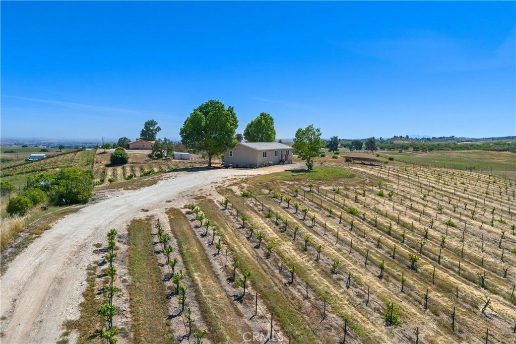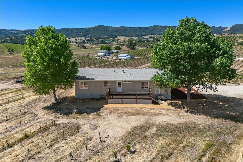 Set on 10.26 usable acres in Paso Robles wine country, this vineyard property combines wide-open space, functional improvements, and panoramic views that stretch across rolling hills and neighboring vineyards. The property is planted with established Zinfandel, Cabernet, and Syrah vines, creating both visual appeal and real agricultural potential. The layout is clean and usable, well-suited for hobby farming, boutique winemaking, or future expansion. The property supports a range of agricultural uses while still appealing to buyers seeking space, privacy, and flexibility. The 3-bedroom, 2-bath manufactured home is permanently affixed (433A) and eligible for traditional financing. Inside, the home offers a bright, open-concept living space with vaulted ceilings and large windows that frame the surrounding landscape from nearly every room. The kitchen opens to the main living area, creating a functional, connected space for everyday living or hosting. New carpet and fresh interior paint make it move-in ready. All bedrooms are well-positioned to capture views, including a primary suite with its own bathroom. An indoor laundry area adds convenience, and the overall layout is simple, efficient, and comfortable. Outside, the setting is what separates this property. A back deck provides a natural place to take in sunsets over the vines, while mature trees and recently improved landscaping around the home create a defined, livable homesite within the larger acreage. The metal barn is a major asset, offering substantial space for equipment storage, workshop use, or agricultural operations. Whether you're storing tractors, tools, or considering future conversion potential, it gives the property real utility that many similar listings lack. Additional features include a ground-mounted solar system, supporting long-term efficiency and lower operating costs. Located within close proximity to Paso Robles while still offering privacy and separation, this property strikes a balance between lifestyle and practicality. It's not just a view property. It's a usable, functional piece of land with infrastructure already in place.