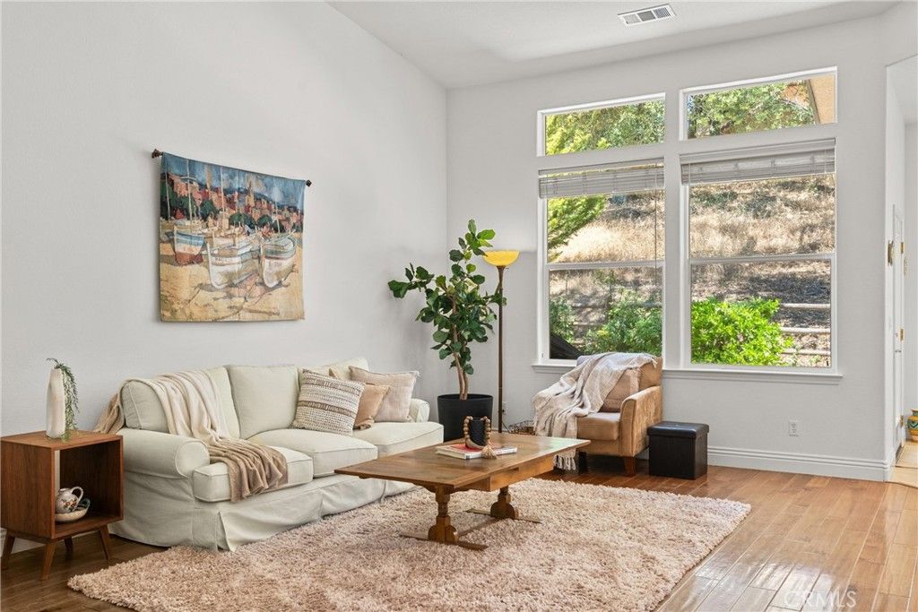 Welcome to 12703 Paso Verde Court, tucked at the end of a quiet cul-de-sac. Set on a gated and beautiful 6.13-acre parcel, this lightly lived-in 4-bedroom, 3-bathroom home offers 3,498± square feet of thoughtfully designed living space surrounded by stately oaks and serene natural beauty. Inside, a grand formal entry welcomes you with soaring vaulted ceilings, rich hickory hardwood floors, architectural details, and expansive windows that fill the home with natural light. The formal living and dining areas create an elegant first impression, while the spacious family room with a cozy fireplace opens seamlessly to the heart of the home, the chef's kitchen. Designed for both everyday living and entertaining, the kitchen features granite countertops, a large center island with bar seating, stainless steel appliances, custom cabinetry, and generous prep space. Just beyond, a casual dining nook leads through French doors to an oversized patio"”perfect for outdoor dining, relaxing evenings, and taking in the peaceful surroundings. The primary suite offers a private retreat with tall ceilings, a sitting area with a marble-surround fireplace, large picture windows, and direct patio access. The en-suite bathroom includes dual vanities, a soaking tub, dual-head walk-in shower, and two walk-in closets. Three additional guest bedrooms with 10-foot ceilings, two full bathrooms, and a well-appointed laundry room provide comfort and functionality for family and guests alike. Additional features include an owned solar system with Tesla battery backup, upgraded LeafGuard rain gutters, security wiring, 220V power in the oversized three-car garage and laundry room. The property also offers a variety of fruit trees"”peach, orange, lemon, grapefruit, and olive"”thriving in the area's unique microclimate. Located just 12 miles from Morro Bay's coastline and approximately 20 minutes to Paso Robles wine country, this property offers a peaceful setting with expansive views"”on clear days stretching toward the ocean"”along with a temperate microclimate that often brings cooler summers and milder winters than in-town locations. Positioned within a Firewise-certified community, the home includes an interior fire sprinkler system, with a fire hydrant conveniently located just outside the property"”offering added peace of mind while enjoying the privacy of this exceptional setting. Seller may consider offering credits toward closing costs or updates.