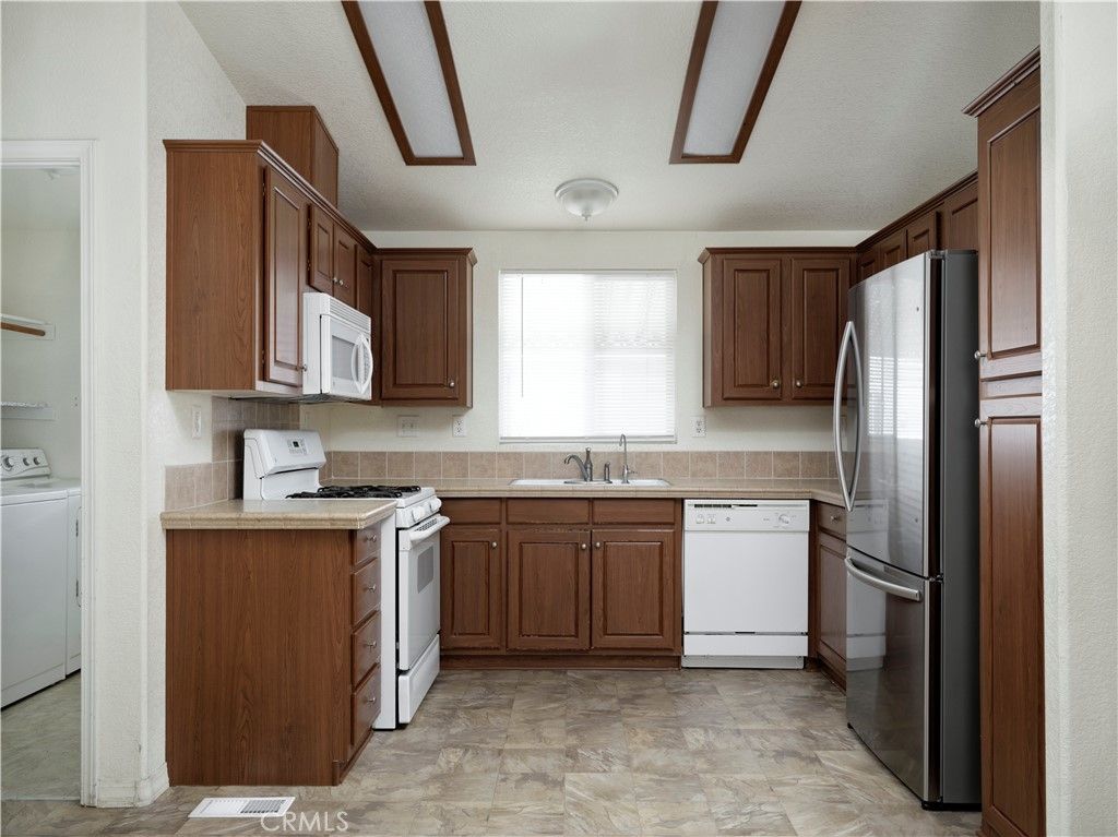 Great opportunity to live in this charming park! Come see this adorable home with all the right vibes. The open living room, complete with a real wood-burning fireplace, welcomes you as you step inside. The kitchen and dining area flow seamlessly next to the living room. Off the hall, you'll find a guest bathroom and two tidy bedrooms, perfect for whatever you can imagine: guest room, office, craft space, library"”the choice is yours. The primary bedroom and attached bathroom offer a peaceful retreat, featuring a walk-in closet, soaking tub, low-entry shower, and plenty of storage. Under the carport, there's an enclosed space ideal for entertaining, relaxing, or creating a lush potted plant garden. A door leads to the neatly paved backyard"”perfect for soaking up the sun or starting a small garden. Two sheds provide ample storage. This little gem truly has it all. Don't miss out on this wonderful park with low leases.