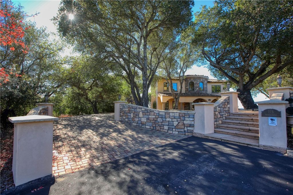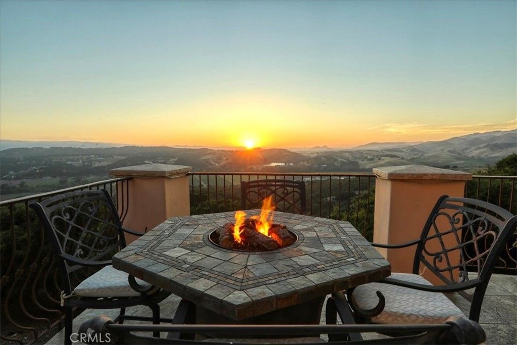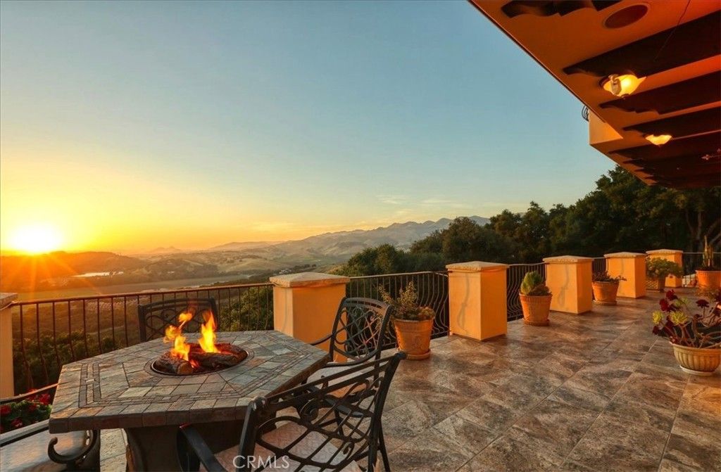 Perched to capture sweeping coastal and valley vistas, this magnificent Tuscan-inspired villa creates a sophisticated yet relaxing atmosphere. Absolutely incredible panoramic views extend to the Pacific Ocean, the Edna Valley, and beyond to the peaks of San Luis Obispo. A welcoming foyer features an elevated beamed ceiling and a beautiful custom wood and iron staircase. The thoughtfully designed floor plan offers elegant engineered wood flooring throughout the main level, complemented by natural wood-beamed ceilings. Five fireplaces throughout the home create a warm and intimate ambiance, while numerous Jeld-Wen windows provide abundant natural light and showcase the surrounding views. The main level includes a gourmet kitchen featuring custom cabinetry with sliding pull-out drawers, a Wolf cooktop with hand-crafted vent hood, built-in refrigerator, wine fridge, spacious granite countertops, and walk-in pantry. The adjoining great room with a wood-burning fireplace offers access on both sides to outdoor living spaces, making it ideal for entertaining. One side opens to a view deck over 50 feet in length, where picturesque vistas of the valley, vineyards, and ocean await. The opposite side leads to a protected courtyard with its own fireplace, creating a relaxed setting to enjoy sunsets and sweeping views. An additional south-facing courtyard is the perfect spot for morning coffee or breakfast as the sun rises above the oak trees. The owner's suite is a tranquil retreat featuring an elevated ceiling, fireplace, and private view deck. The en-suite bathroom includes a separate soaking tub, walk-in closet, and a spacious step-in shower with valley and ocean views. Two additional guest suites each offer their own bathrooms, with one featuring a private view deck. Additional spaces include a library, gym, and office, each offering flexibility for a variety of uses or potential conversion to additional bedrooms. The home also features abundant storage throughout, including two closets intentionally designed for a future elevator if desired. On the lower level is a approximately 500 sq ft guest studio complete with kitchenette, full bathroom, private access, and private patio. A hobby room is conveniently located near the oversized three-car garage. Surrounded by over 4,500 acres of protected open space, Las Ventanas Ranch is a highly sought-after, exclusive custom home community, located just minutes from the Village of Arroyo Grande and San Luis Obispo.