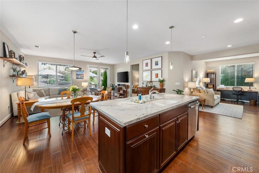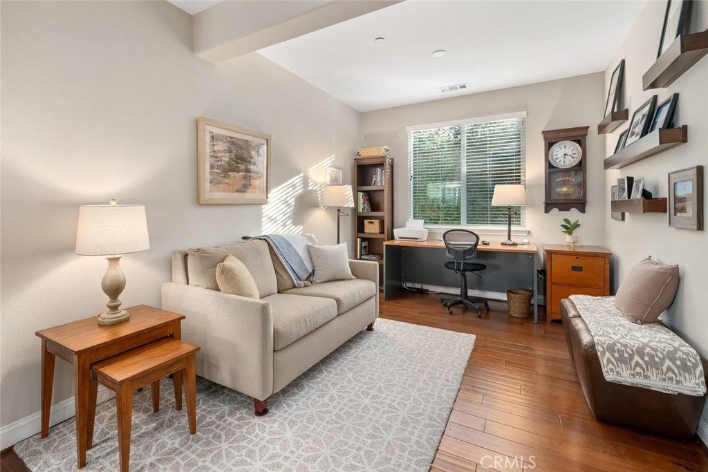Nestled against a peaceful greenbelt, this residence immediately captivates with its warmth, beauty, and sophistication. Step inside and rich hardwood floors lead you toward the heart of the home "” an impressive chef's kitchen. Warm cabinetry with soft-close and roll-out drawers pairs with a striking quartzite island, its graceful gray veining creating a refined centerpiece for gathering and entertaining. Stainless steel appliances, custom backsplash and under cabinet lighting complete the space with a polished, modern touch. The kitchen flows seamlessly into the great room, where expansive windows frame serene views and fill the space with natural light. Beyond the French doors, the home reveals its most enchanting feature: a truly luxurious indoor-outdoor living experience. A wide paver patio unfolds like an outdoor great room, anchored by an oversized fireplace that sets the stage for morning coffee, sunset wine, and memorable evenings under the stars. With an inviting sitting and a dining area, the space feels effortlessly expansive, doubling its sense of space. A natural extension of the home that enhances both its livability and its sense of retreat. Follow the paver pathways and the garden begins to unfold like a curated landscape. Raised beds, fruit trees & vibrant plantings create a setting that feels lush yet remarkably low-maintenance. Quail scuttle, hummingbirds hover over blossoms; birds chatter, and monarch butterflies drift about. It's a living sanctuary, rich with movement and color. As the sun sets, the surrounding trees take on a bronzed glow, casting a warm, golden light across the yard. A home where every detail has been thoughtfully designed: fresh paint, upgraded bathrooms with double vanity and Silestone slab counters, Air Conditioning, upgraded lighting, window treatments, ceiling fan and added storage. A pre-paid solar lease adds exceptional value "” the homeowner has enjoyed zero electric bills and annual credits. More than a home, this is a refined private retreat that invites you to savor the beauty of the Central Coast both inside and out.
