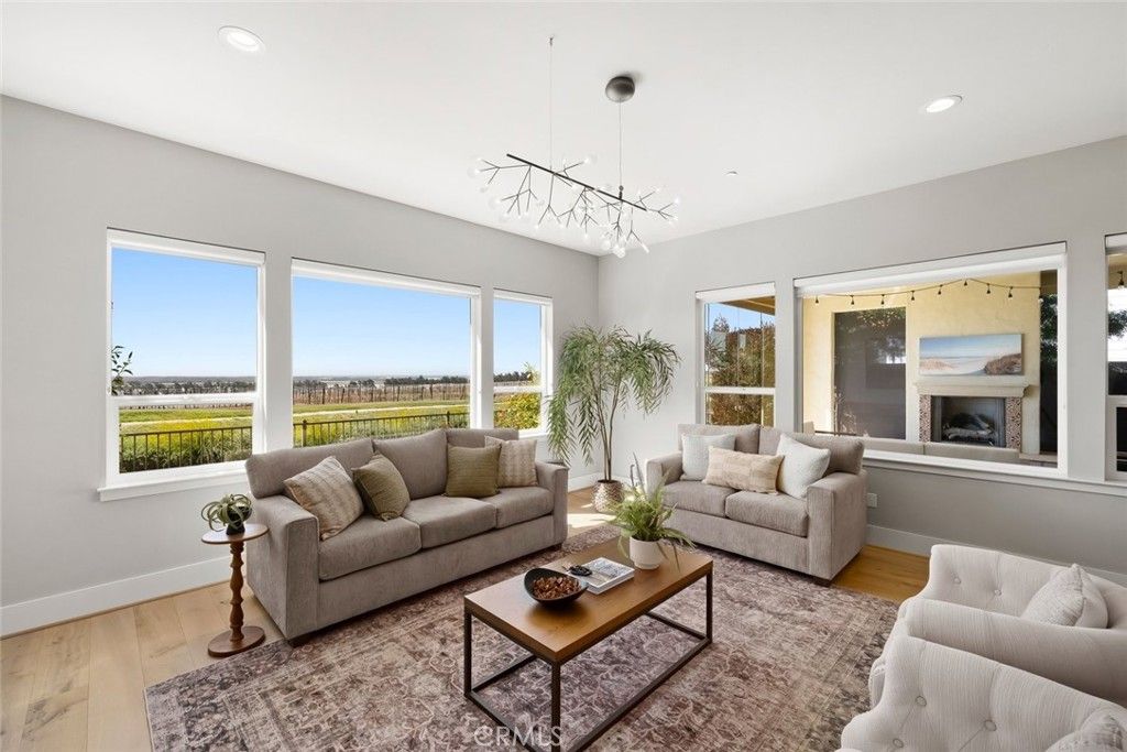 Welcome to the Riviera, a stunning Estate home offering breathtaking views of the Pacific Ocean, sand dunes, vineyard and mountains: Impeccably designed for optimum daily living and stylish entertaining. This 3 bedroom, 3.5 bath, plus office home offers an abundance of upgrades - over $400,000 worth, on top of a $200,000 lot premium. You'll appreciate the gorgeous engineered wood flooring, plantation shutters, Silhouette shades with blackout option, and luxurious light fixtures throughout. Enter through a Dutch door into a private portico/courtyard with serene landscaping, tiered fountain, radiant ceiling heaters, multiple seating areas, plus a private entrance to the Casita. Step into the main home and you'll discover a music room/office, plus culinary kitchen, spacious great room and dining space with abundant natural light and incredible open views. The kitchen features rich, soft-close Shaker style cabinetry, GE Profile appliances, including a gas cooktop with stainless hood, double wall oven, built-in refrigerator, white quartz island and countertops and tiled backsplash. Adjacent, is a supersized walk-in pantry and fully-customized Smart Space/laundry room. The outdoor space is equally amazing with a numerous fruit trees, raised garden beds, spectacular views, and the "California Room", a screened and sliding glass enclosed 320 sq. ft. patio with radiant ceiling heaters, flagstone floors, fireplace with flagstone hearth and a secluded hot tub for sunset relaxation. At night, retire to the owner's suite, an inviting well-appointed bedroom with a luxurious spa bath featuring a walk-in shower, separate dual sinks, soaking tub, walk-in closet with/dual-sided mirrored door and linen storage. The guest wing includes a powder room, 2nd bedroom with full en-suite bath, and the independent air conditioned Casita with bedroom/sitting area, full bath and walk-in closet. Additionally, there's a 3-car tandem garage with showroom epoxy floors, storage wall panels, custom cabinetry, and storage. High tech upgrades - LifeSource whole house water filtration system, additional owned solar panels, two owned Tesla power walls and an integrated security system with key-less entries. You'll never want to leave this meticulously designed home, but when you do, you'll be part of the unique Trilogy experience with championship golf, pickleball, tennis, member-led clubs, exclusive lifestyle activities, two award-winning restaurants, fitness center and Sandalwood Spa.