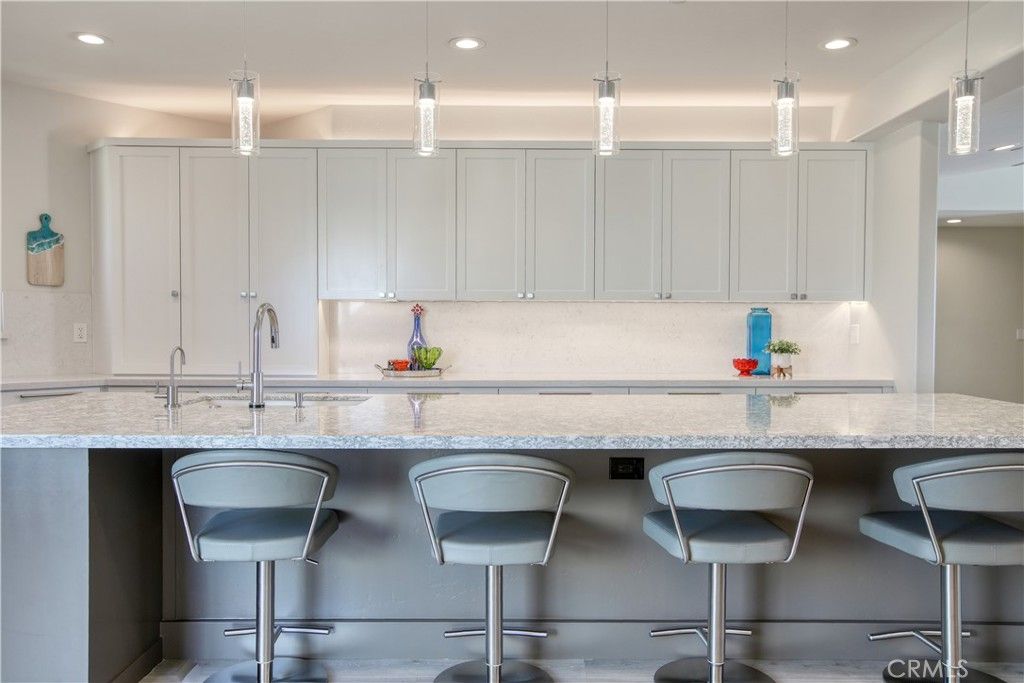 Absolutely stunning, this exceptional home delivers a true "wow factor" from the moment you enter. A rare find on the Central Coast, this single-level residence offers approximately 4,278 sq ft of beautifully renovated living space on almost an 1-acre, perfectly positioned to capture breathtaking, panoramic ocean views. Thoughtfully redesigned with a refined vision and high-end finishes throughout, the home showcases sweeping ocean views from most interior spaces, as well as from the expansive back yard. Designed with both style and function in mind, the entertainer's kitchen is a showpiece featuring an oversized island (approx. 4' x 13') with a striking granite countertop, absolutely stunning designer backsplash and premium appliances including Thermador gas range/oven, dishwasher, and drawer-style microwave. The island space is designed with a waterfall edge and dual side bar seating for at least 6. Included in the design is a dedicated wine/beverage bar with abundant storage, a butler's pantry, laundry room designed to accommodate an additional refrigerator & separate freezer. A half bath and an inside storage room is also on this wing. The open-concept living area is light and spacious, enhanced by custom built-ins, a new gas fireplace and a dramatic 6-panel retractable glass door system that seamlessly connects indoor living to the outdoor deck. A bonus media/living room was added for a more private quiet setting just off the main living - all with a view. The primary suite is a private sanctuary accessed through double doors with ocean views from bed, a beautifully updated bath with marble tile shower enclosure, more than generous storage, a walk-in closet, plus an additional oversized second closet off the bedroom area. On the opposite wing of the home are 2 spacious guest ensuite bedrooms, one with ocean views, along with a private home office. The attached oversized 3-car garage is equally impressive, added recently featuring two modern opaque glass-paneled garage doors equipped with ultra-quiet openers and two electric vehicle charging stations. Designed to accommodate additional household storage needs. Last but not least, step out onto the back deck and take in panoramic ocean views. Choose to relax from either the covered patio with floor to ceiling electric retractable screens & heaters for year round use, the additional deck area, the built in fire pit area or the very generous back yard area. Views galore! This is a must see!