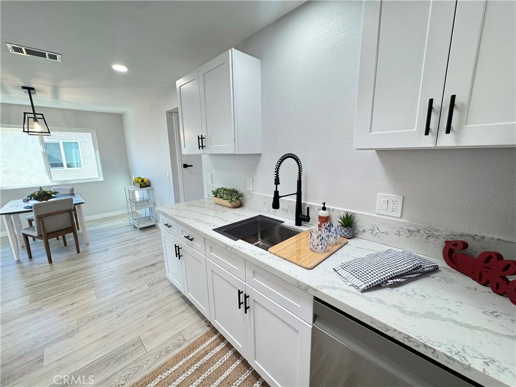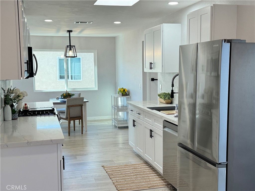 Beautifully updated 2 bedroom, 2 bathroom twin home offering 1,088 sq ft of comfortable living in a quiet, low-traffic 55+ community in desirable Grover Beach. Originally built in 1977, this home has been recently and extensively renovated, including complete interior painting, creating a fresh, modern, move-in-ready feel. Exterior upgrades include a newly painted exterior, dual-pane windows throughout, updated exterior lighting, and a welcoming front patio with pavers. The remodeled kitchen has been thoughtfully redesigned and enhanced by removing the ceiling soffit to create a more open and airy feel. Features include soft-close cabinetry, quartz countertops, deep-set sink, Samsung appliance package (stove, refrigerator, dishwasher, microwave), recessed dimmable lighting, skylight, and a new dining area light fixture. Laminate flooring flows throughout the home, offering durability and easy maintenance. Both bathrooms have been fully upgraded with new vanities, fixtures, mirrors, lighting, and tile. The front bath offers a dual-sink vanity with a tub tiled to the ceiling, while the primary bath features a beautifully tiled floor-to-ceiling shower. Sleek black fixtures throughout complete the modern design. Enjoy a private backyard with new paver patio and new fencing, ideal for relaxing or entertaining. Additional highlights include a two-car garage, laundry in garage, and a prime location close to beaches, shopping, dining, and easy Highway 1 access"”offering the perfect blend of turnkey comfort and Central Coast coastal living