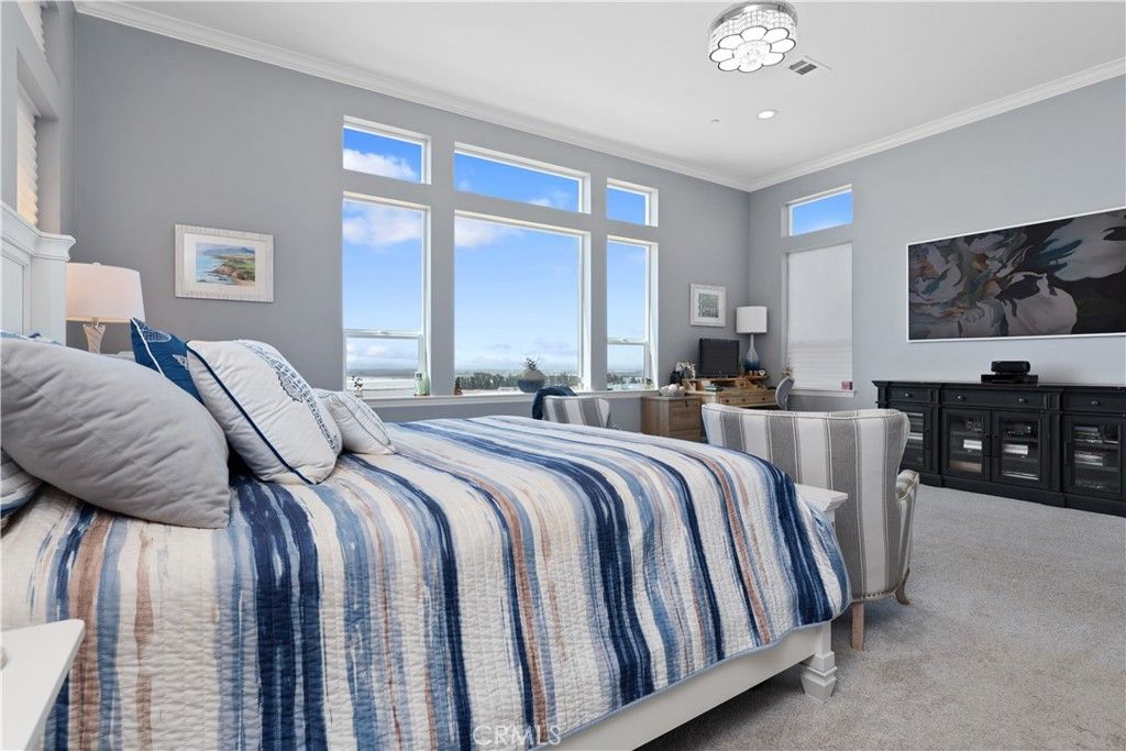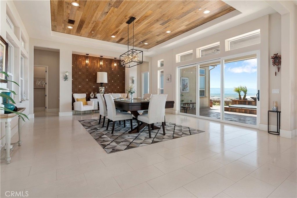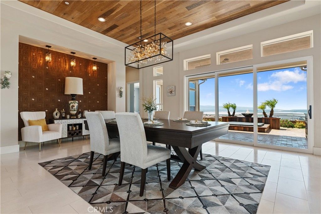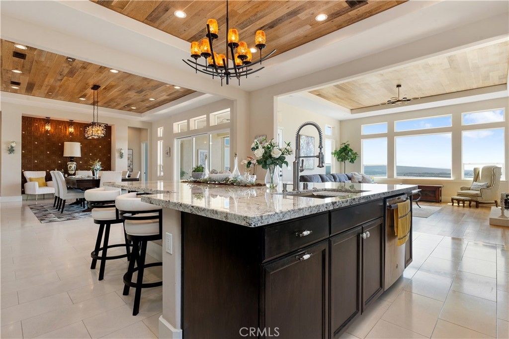 Stunning single-level Dolcetto model in Trilogy at Monarch Dunes, situated on a premier lot with unobstructed panoramic views of the ocean, coastal mountains, vineyards and the Santa Maria Valley. Enter a serene courtyard featuring etched concrete and built-in stone gas fireplace - A breezeway leads into the main living area, where high ceilings and an expansive open floor plan immediately showcase the breathtaking views. Inside, elegant finishes abound, including heated French limestone flooring and French oak ceilings with recessed lighting. The gourmet kitchen is designed with large granite countertops, dark stained cabinetry with custom hardware, a glass tile backsplash, a striking glass tile range hood, and walk-in pantry. A unique modification expands the traditional Dolcetto layout, adding approximately 53 square feet of versatile living space - ideal for a home gym, wine alcove, or creative retreat. The kitchen, dining area, and living room flow seamlessly together and open to the outdoor living space through a dramatic sliding glass wall. Step outside to a wraparound patio designed for both entertaining and tranquility, featuring Creme Fraiche pavers, multiple seating areas, a built-in hot tub with wood trim, planters, a gas firepit, and a dry sauna. Back inside, the living room offers a refined atmosphere with a quartzite gas fireplace, chandelier and continued French oak ceiling detail. The dining room is equally impressive, featuring a sleek dining table with a hidden pool table, elegant lighting and acoustic wall treatments. The owner's suite is privately situated and offers stunning views, heated marble flooring, and crown molding. The spa-inspired bath includes a soaking tub, dual vanities, a glass-enclosed shower with full height recycled glass tile, marble flooring, quartz countertops, and a large walk-in closet with direct access to the laundry room. Additional spaces include a powder room, dedicated office with French oak flooring, and crown molding, as well as two guest bedrooms - each with custom closets and ensuite bathrooms featuring upscale finishes. Additional highlights include - Golf cart garage with expanded driveway / Custom attic storage access / Solar system / Landscaped side yard / remote-controlled patio sunshade / Slatwall garage system and more. This is a rare opportunity to own a thoughtfully upgraded home that perfectly blends luxury, comfort and breathtaking Central Coast views.