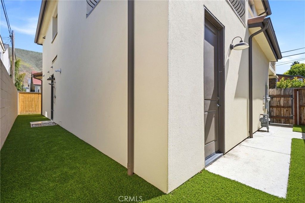 Welcome to coastal luxury in the heart of Pismo Beach, just moments from the water. This stunning modern Spanish-style residence blends timeless architecture with refined coastal living, featuring a striking rock exterior and a grand entrance that immediately sets the tone. As you enter, an elegant staircase leads you to the main living level, where an expansive open-concept layout creates the perfect space for entertaining. The beautifully designed kitchen flows seamlessly into the spacious living room, opening out to a private balcony with an ocean view"”an ideal setting for morning coffee, sunset gatherings, or enjoying the fresh sea air. For sunny coastal afternoons, the balcony is equipped with retractable awning shades, allowing you to enjoy the outdoor space in comfort while taking in the ocean view. The primary suite also offers direct balcony access, allowing you to unwind each evening with the soothing ocean breeze. Just off the primary bathroom, a private patio retreat provides an additional space to relax in peace. Downstairs, you'll find two additional bedrooms, thoughtfully designed for comfort and privacy. One functions as a junior suite with its own full shower bathroom, creating a second primary-style space perfect for guests or multigenerational living. The additional bedroom enjoys easy access to its own nearby bathroom. A convenient office nook on the lower level offers the perfect work-from-home or study space. Outside, the home continues to impress with beautifully designed, low-maintenance outdoor spaces. The front yard features a charming putting green and inviting patio area ideal for entertaining with a newly added half stucco privacy wall that enhances the front exterior, adding both style and seclusion. While the backyard is finished with premium artificial turf for easy upkeep and year-round beauty and an outdoor shower to use after a long sandy day at the beach. This is the perfect blend of elegance, comfort, and coastal lifestyle in one of the Central Coast's most desirable beach communities.