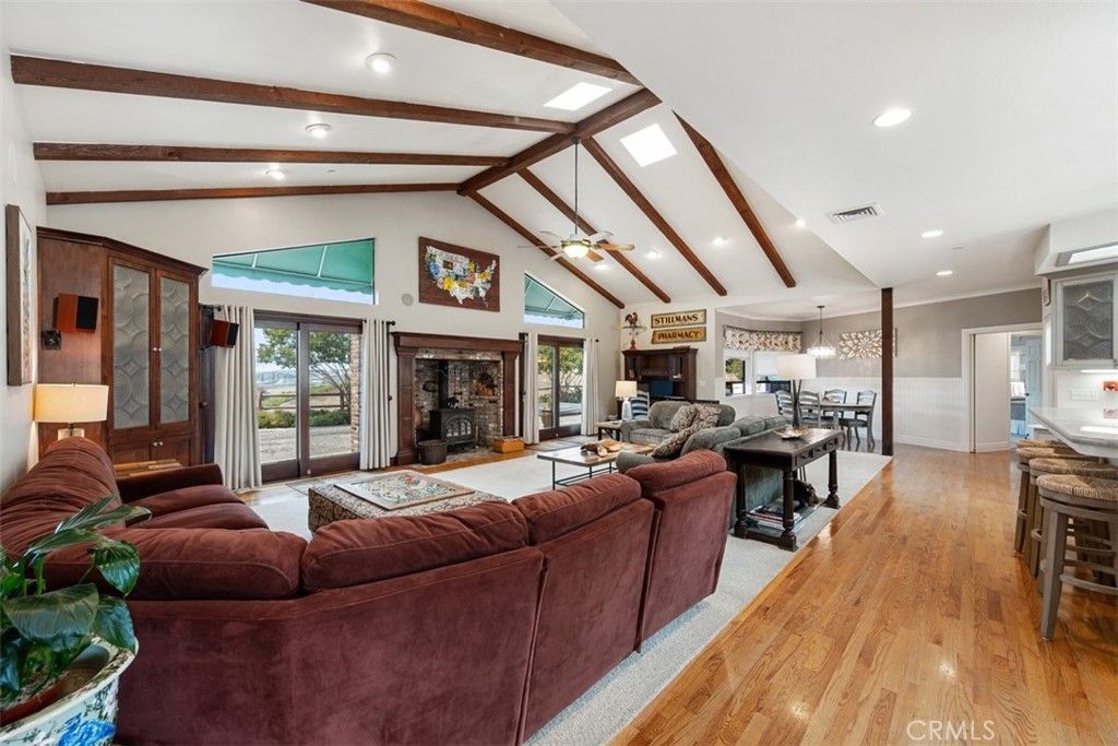 PRICE REDUCED!!! Located in the Corbett Highlands area off Corbett Canyon in Arroyo Grande, equidistant between the village of Arroyo Grande and downtown San Luis Obispo. This 5-bedroom, 4-bath single-level estate blends luxury with just the right touch of rural charm. Set on nearly 6 private acres, the property offers sweeping views of Edna Valley wine country and rolling hills. Upon arrival at the gated entry, featuring custom-made glass-leaf detailing, a circular drive, and generous parking, the tone is set for a home that is as welcoming as it is impressive. Renowned builder Steve Stillman built this estate for his family. Step into the entryway to a great room featuring beamed ceilings, a cast-iron wood-burning stove with a brick surround, and double sliding glass doors that open to the front outdoor living space. The chef's kitchen features a large island with a gas range, a custom refrigerator, double ovens, artisanal lighting, designer glass accents, and ample cabinetry, plus a large walk-in pantry for added convenience. The primary suite is a retreat of its own, complete with a cozy fireplace, a window-seat reading corner, dual closets, and a luxurious ensuite bath with soaking tub, glass-enclosed shower, dual vanities, and custom finishes throughout. Additional highlights include: "¢Flexible ADU/Game Room with its own kitchen, bath, fireplace, and French doors leading to the backyard. "¢Massive drive-through workshop with office, ideal for vehicle storage, hobbies, or business use. Additionally, there is another building and a temporary storage shed. "¢Whole house fan, x2 Attic fans that are temperature regulated, central HVAC, surround sound system, and thoughtful designs for modern comfort. "¢Multiple outdoor entertaining spaces for gatherings, large or small. "¢New roof installed in 2025. "¢Commercial-grade water filtration system and softener. "¢X4 animal shelters, plus a Chicken coop, Greenhouse, and vegetable garden with gopher-resistant raised beds. "¢Over 50 rose bushes, all identified. "¢This estate could also be suitable for horses and other livestock. The property has recently been home to goats and alpacas"” making it ideal for 4-H projects. Regarding insurance, we have identified some affordable and available options that do not include the CA Fair plan. Offering privacy, functionality, and timeless elegance, this single-level Corbett Highlands estate is a home to enjoy for generations.