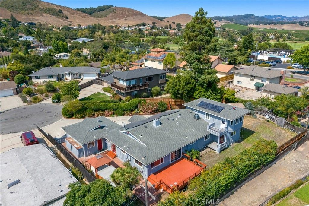 Seize this rare opportunity to own a 5-bedroom, 5-bath Nantucket-style home on a large lot, including a fenced-in 40' RV hookup pad! A perfect blend of comfort and functionality makes for an amazing, well-sized residence in this highly desirable San Luis Obispo Country Club neighborhood with no HOA. Located on a quiet cul-de-sac near Los Ranchos Elementary and the wine region of Edna Valley, this property offers stunning surroundings and mountain views with a host of premium features that make it truly one of a kind. The main house enjoys both a generous upstairs primary retreat with an ensuite and an additional junior suite on the ground floor. The backyard includes a spa with a Gazebo/bar, a separate 15' swim spa pool, and a brick patio, plus a large wood deck for your outdoor entertaining needs. It features new front windows and a one-bedroom, one-bath guest unit with a separate entrance. There's plenty of parking thanks to ample space in two driveways for up to 6 cars, plus a 2-car garage with 220 electric EV charging available inside or out. This home is far below the current SLO price per square foot, to easily allow remodeling to match your own style while still being clean and move-in ready!