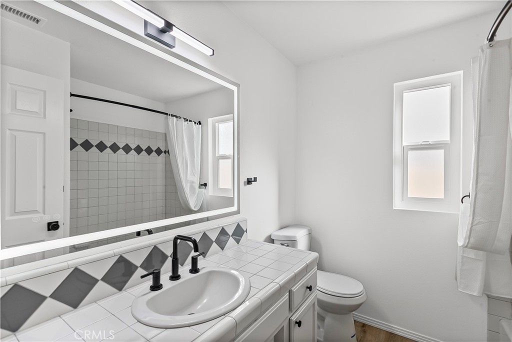 Sun-drenched and beautifully reimagined, this 1,335 sq ft two-bedroom, two-bathroom condo offers a perfect blend of style, comfort, and effortless living. Soaring ceilings and expansive windows flood the home with natural light, creating an airy, welcoming ambiance from the moment you step inside. The lower level features a generously sized bedroom with sliding glass doors that open to a private patio and yard - an ideal guest suite or home office - paired with a full bathroom for added convenience. Upstairs, the open-concept living, dining, and kitchen spaces shine with dramatic ceiling heights, making everyday living feel elevated. Step just outside the dining area to a cozy patio - perfect for morning coffee, evening wine, or gathering with friends under the stars. Down the hall, you'll find a second spacious bedroom, an additional full bathroom, and a conveniently located laundry area, all thoughtfully designed to maximize comfort and functionality. Recent upgrades throughout the home include fresh interior & exterior paint, new carpet and flooring, and brand-new appliances, ensuring a truly move-in-ready experience. Rounding out the property is a large two-car garage with a freshly epoxied floor and a bonus storage room for your bikes, gear, and everything life brings along. Stylish, light-filled, and impeccably updated, this home offers the space you need and the lifestyle you want, ready for you to move in and make it your own. Seller will cover first year of HOA fees.