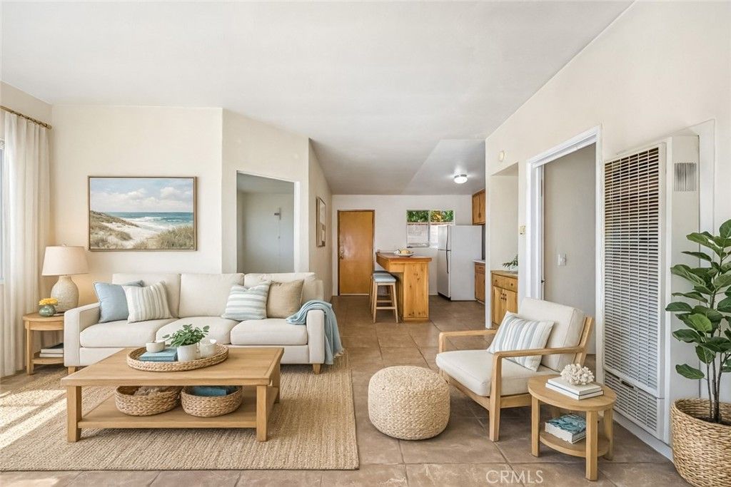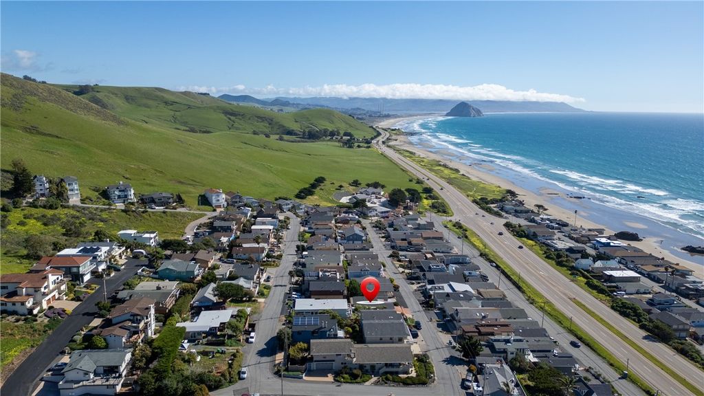 Charming Cayucos beach bungalow with ocean views on the desirable south end of beautiful Cayucos Beach. This inviting cottage captures blue-water views from the property, creating a serene coastal backdrop for everyday living. Enjoy your morning coffee or evening beverage from the spacious front patio or the light-filled living area as you take in the colorsof the sunrise and sunset skies. A cozy breakfast bar defines the entry while opening to a functional kitchen complete with gas range, refrigerator, generous cabinetry, and ample counter space. The rear bedroom offers added privacy and comfortable proportions, located across from the hall bath. Newer tile flooring runs throughout, providing a clean, low-maintenance coastal aesthetic. A covered carport accommodates one vehicle, with additional driveway and street parking available. The expansive front patio and yard offer exceptional outdoor living space with potential for future expansion. Just moments from the beach, sand, and surf, and only minutes to downtown, this delightful cottage is the perfect opportunity to own your own slice of the Central Coast.