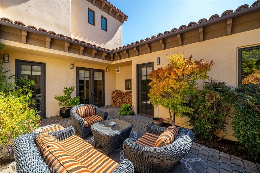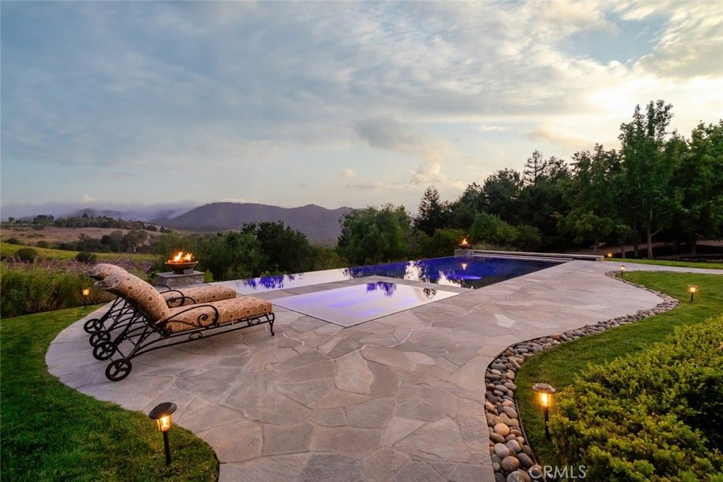 Tucked behind the gates of Bassi Ranch in the serene Avila Valley, this extraordinary property combines privacy, luxury, and timeless Tuscan-inspired architecture. Entering the gated community and turning down the private driveway, the remarkable views are sure to capture your attention. The property is recessed below street level, the residence is hidden from view, offering privacy while framing sweeping views. The home sits on a 3-acre parcel with additional land for exclusive use of this property for equestrian or agriculture. The home has exquisite amenities such as pre-paid solar and battery a backup system, infinity edge pool, fully landscaped and a spacious 4 car garage. A grand motor courtyard welcomes guests with room for over 14 vehicles. The custom floor plan provides the primary suite, a large office, a guest suite accessing the large, secluded courtyard and all living areas on the entry level to provide easy living. The house offers an extravagant entry with two story ceilings. The living room provides grand ceilings with wood beams and sprawling views of the valley and rolling hills. It also includes a wood burning fireplace and surround sound. The chef's kitchen, designed for both function and beauty, has dual islands, double ovens, two sinks, two dishwashers, striking marble countertops, and space for everyone to cook and congregate together. The kitchen has beautiful picture windows overlooking the scenic Avila Valley and infinity pool which showcases two fire pits, speakers and ambient lighting. The kitchen and living room flow out into the back yard, where the heated infinity pool and spa overlook the horizon and surrounding valley views. The outdoor patio includes a built-in BBQ and sink. The partially covered patio area has built-in heaters. The primary suite is a sanctuary with an adjoining office, a large walk-in closet, and a spa-worthy bathroom. The shower features triple shower heads and a built-in bench. The primary bedroom leads to a private outdoor patio, adjacent to the pool and back yard. The spacious dining room is adjacent to the kitchen and opens to the private side patio. Upstairs provides a large den with sweeping views and two large storage rooms. It also has a deck to relax or greet your visitors. The two wings on the upper-level offer 4 total bedrooms and 2 guest bathrooms designed in a jack and jill orientation for ease and convenience. This estate offers true elegance and showcases the essence of luxury living.