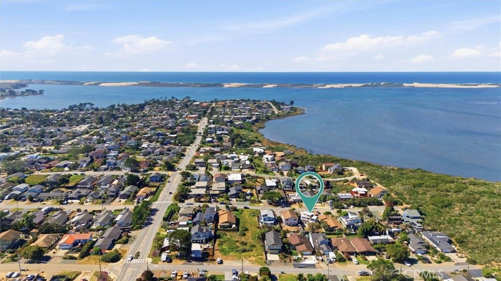 Discover this beautiful and unique modern home tucked away in a private, relaxing setting just 7 houses from the Elfin Forest and moments to Baywood Park. Thoughtfully designed, this home blends style with breathtaking natural surroundings. The wraparound balcony showcases sweeping views of the bay, Morro Rock, iconic Seven Sisters and spectacular sunsets. Inside, every room features beautiful exposed wood beam ceilings. Downstairs, the primary suite offers a spacious walk-in closet with laundry, shower, and custom double-sink vanity. There are also two guest bedrooms, one with access to the back yard, plus a separate 3/4 guest bathroom. Upstairs, the light-filled living room impresses with expansive windows, a freestanding fireplace, and French doors opening to the front balcony. The updated kitchen features black granite countertops, matching appliances and an adjoining spacious dining area with large viewing windows. There is a 3/4 guest bathroom for convenience. Outside, enjoy the large blank-space backyard ready for you to add your own personal touches and two convenient storage sheds. The front yard has planter boxes, a charming boardwalk walkway, carport and long driveway which provides extra parking . Located on a quiet cul-de-sac street, this one-of-a-kind coastal property offers privacy, beauty, and convenience.