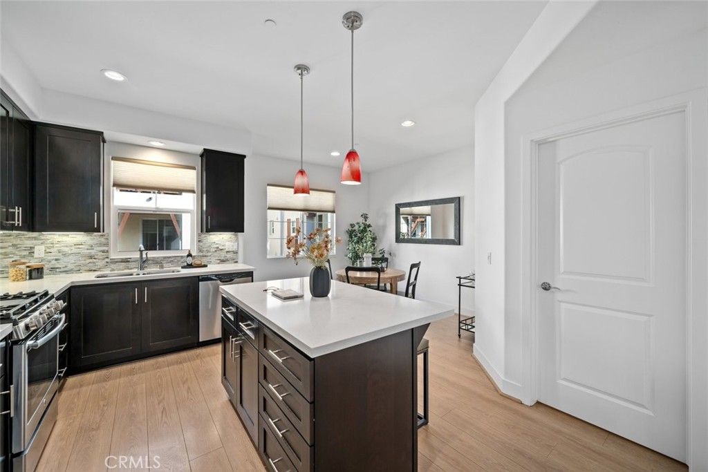 Meticulously maintained 3-bedroom, 3.5-bath townhome featuring warm, modern finishes and a comfortable, functional layout. The entry-level bedroom and full bath offers a private retreat for guests, extended family, or a versatile home office. The main living level features an open-concept great room that flows seamlessly into a beautifully appointed kitchen with espresso cabinetry, quartz countertops, and a custom tile backsplash. The kitchen includes a charming breakfast nook for casual meals, while a designated formal dining area offers the perfect space for hosting and gatherings. Spacious balcony, ideal for relaxing and enjoying the hill views. Upstairs, the spacious primary suite offers a walk-in closet and large bath with dual sinks and a distinctive river rock shower. The secondary upstairs bedroom includes its own ensuite bath, providing comfortable and private space for family, guests, or hobbies. Additional highlights include stylish window coverings, laundry room, and a two-car garage with extra guest parking nearby. Enjoy a relaxed, low-maintenance lifestyle in a charming community featuring creekside walking trails, gardens, a fire pit, BBQ area, and outdoor games like bocce and horseshoes. Ideally located just minutes from local cafés, breweries, restaurants, shopping, hiking trails, and more; while still offering easy access to downtown, parks and beaches.