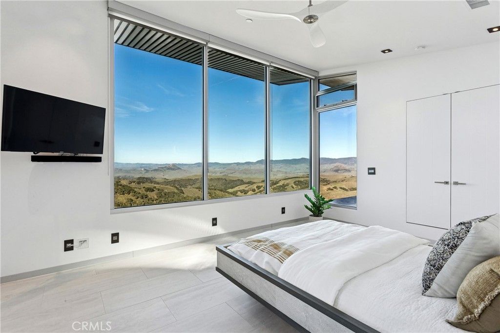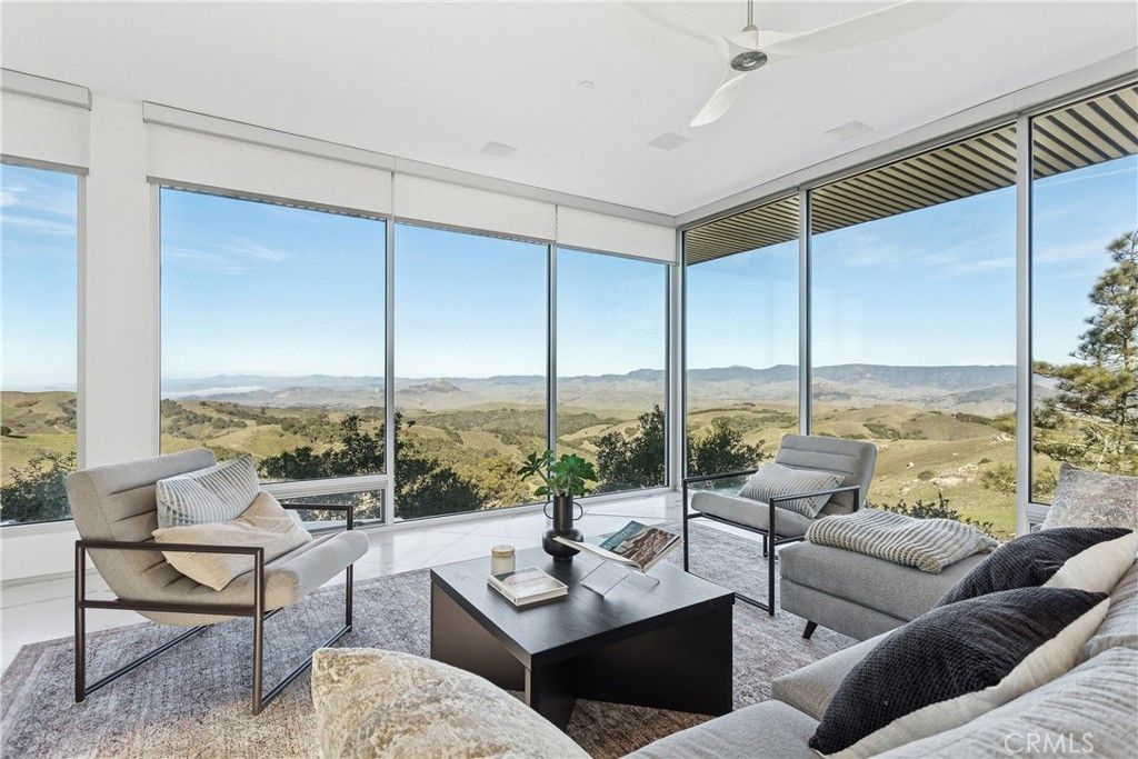 Where architectural masterpiece meets the horizon! This private hilltop estate is a modern, fully custom, luxurious residence commanding breathtaking panoramic views of Morro Bay, Coastal Ocean Vistas, and the Los Osos Valley. The residence is completely off grid with solar panels, Tesla battery backup, Kohler generator, two 10,000-gallon water tanks, and two 500-gallon propane tanks. Custom designed and built with uncompromising materials and attention to detail, the home showcases dramatic architectural lines with a striking blend of stone, metal, and floor-to-ceiling tinted and fluted glass encased in anodized aluminum frames, along with custom exterior panels across the roof, walls, fascia, and eaves. A gated driveway leads to a dramatic entry tower, opening to a light-filled interior where walls of glass frame endless Central Coast views. Custom features include automated blinds, Sonos sound system, heated floors, ceiling fans, and floor-to-ceiling porcelain tile. Open living spaces flow seamlessly for everyday living and entertaining. The guest suite offers a large private deck. The chef's kitchen features Dacor Modernist graphite appliances, sleek two-tone acrylic cabinetry, a large island, vent hood, wine cooler, side-by-side tower fridge/freezer, and a built-in granite and steel dining table with a downdraft-vented Gaggenau wok. Additional amenities include porcelain flooring, full-height custom tile, high-end fixtures, tall Dayoris doors with fluted glass, custom lighting and undercounter lighting, retractable TVs, Murphy bed with workspace, security system, art nooks, and a spacious back patio positioned for sweeping views. Outdoor living includes a stone fire pit, outdoor shower, and integrated gathering areas designed for relaxation and entertaining. A junior ADU features a JennAir appliance package, two-tone acrylic cabinetry, granite countertops, and custom finishes, ideal for guests, extended family, or rental use with a separate entrance. The property also includes 400-amp service, Kohler standby generator, exterior fire-prevention sprinkler system, high ceilings, floating steel staircase, frameless barn doors, floating cabinetry, built-in beds and nightstands, and a 2.5-car garage with epoxy floors, sink, freezer, refrigerator, and workspace. Surrounded by breathtaking natural beauty, this private hilltop retreat is a place where your dream home becomes reality.