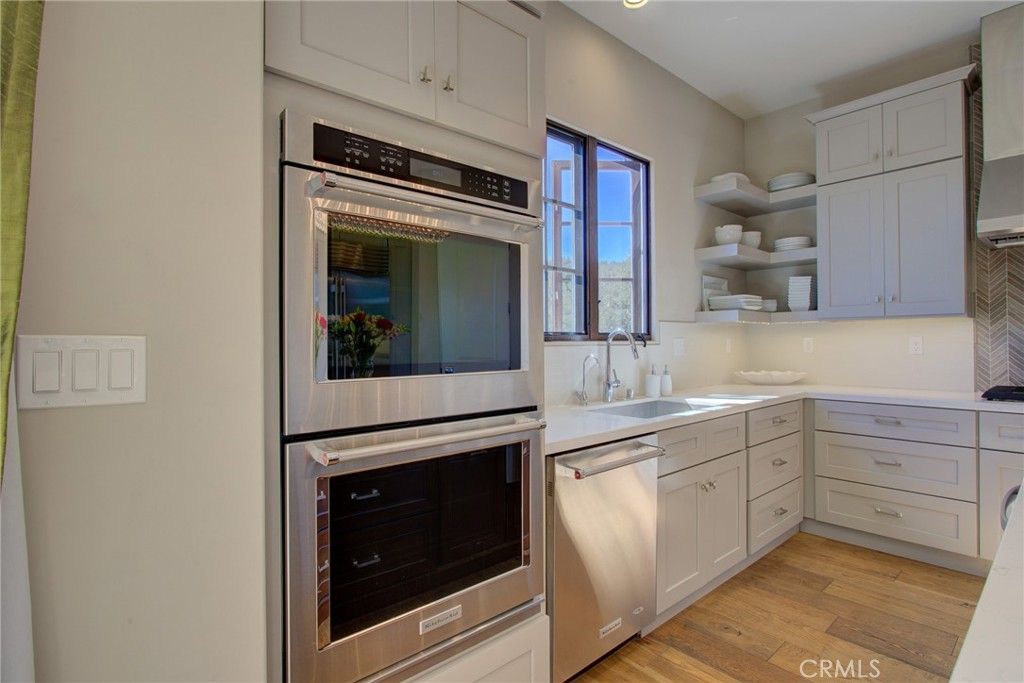 Welcome to an exceptional residence located within the prestigious gated community of Monte Sereno in Arroyo Grande. Set among the scenic rolling hills, this beautifully designed home offers privacy, space, and sweeping hillside views while remaining just minutes from the Village of Arroyo Grande, Lopez Lake, 8 miles to the beach and close to Edna Valley wine region. This stunning private property has a grand entry-level living floor plan with vaulted ceilings, panoramic views, an open floor plan, and expansive outdoor living spaces, 3 car garage and newly installed AC unit. Wide plank wire-brushed wood flooring runs throughout the main living areas, complemented by recessed lighting, large baseboards, and elegant light fixtures. The thoughtfully designed floor plan features expansive view windows and numerous doors that fill the home with natural light and showcase the surrounding landscape. Upon entering the solid wood front door, you are welcomed into the main living area which flows effortlessly to the large walk-out back deck, perfectly positioned to capture the beautiful Central Coast scenery and enjoy the area's exceptional microclimate. The residence seamlessly connects the living room, dining area, and kitchen, creating an ideal setting for both everyday living and entertaining. The chef's kitchen offers abundant cabinetry, floating shelves, venting view window, a Sub-Zero refrigerator/freezer, built-in KitchenAid cooktop with vent hood, tile backsplash, double KitchenAid ovens, KitchenAid dishwasher, and a Sharp microwave drawer. A spacious island provides additional gathering space with integrated drawers and cabinets. A large office provides an elegant work environment. The primary suite features a spacious bedroom with views of the rolling hills and French doors leading to a view deck. The spa-inspired bathroom includes a soaking tub, walk-in shower, and generous closet space. The stylish and functional laundry room offers cabinetry, a utility sink, and a folding station. The lower level offers a large den, three bedrooms, and two bathrooms, making the home ideal for guests or multigenerational living. The den provides flexible space for a media room, game room, or secondary living area and opens directly to the covered back patio and landscaped grounds, creating a seamless indoor-outdoor lifestyle. The outdoor spaces are designed for low-maintenance living and entertaining, featuring a covered patio, professionally landscaped grounds.