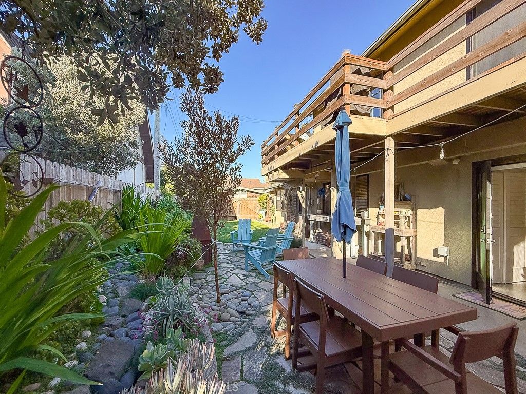 Just blocks from Moonstone Beach"”known for its dramatic shoreline and iconic boardwalk"”and steps from the Fiscalini Ranch Preserve with miles of blufftop and forested trails, this private coastal retreat offers a rare blend of flexibility, natural beauty, and comfort in Cambria's sought-after Park Hill neighborhood. From the home you can enjoy a partial ocean view and refreshing coastal breezes. Situated on a 5,000± sq ft corner lot, the 2,336± sq ft residence features four bedrooms and four bathrooms with excellent flexibility for multi-generational living. The first level includes an attached one-bedroom, one-bath guest suite with its own entrance, living area, kitchen, dining nook, separate heating system, and optional yard separation with dedicated parking. The entry level also includes two additional bedrooms and a full bath, while the upper level offers the main living areas and a beautifully remodeled primary suite. Light-filled and open, the living room features vaulted wood-beamed ceilings and a brick wood-burning fireplace with gas assist. Ocean and mountain views can be enjoyed from the primary bedroom and main living spaces, while the upper deck and flagstone patio below"”with an outdoor pyro-tower fireplace"”create inviting areas for relaxing or entertaining. Additional highlights include a two-car garage, owned solar, tankless water heater, whole-house water filtration and softener, air ionization system, Nest thermostats, EV charging, RV parking with hookups, Ring security system, Flume leak detection, and low-maintenance landscaping. Located near Fiscalini Ranch's Upper Trail, Shamel Park, and Moonstone Beach, this special property captures the privacy, flexibility, and coastal lifestyle that make Cambria living so unique.