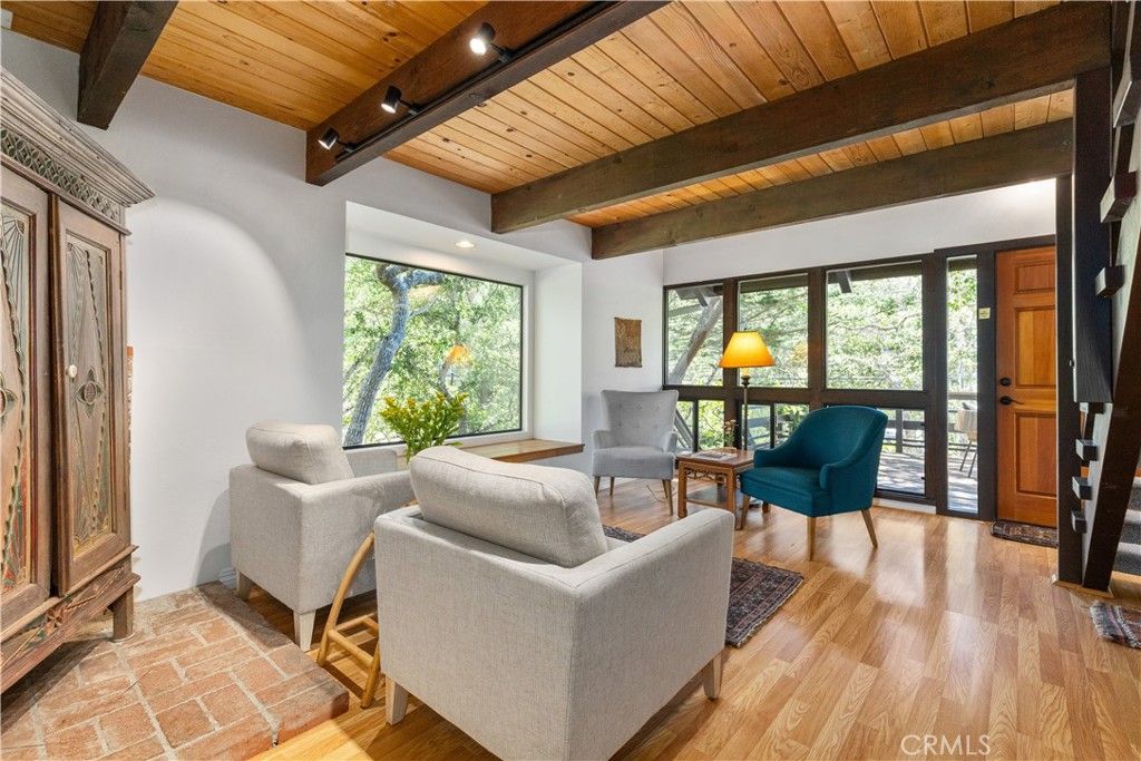 Escape to Your Artistic Coastal Treehouse! Tucked among the trees in the sought-after Cambria Pines by the Sea, this custom-built home offers a truly special coastal retreat"”perfect as a serene second home or full-time escape. Filled with natural light, the home showcases beautiful wood and glass throughout, blending seamlessly with its peaceful surroundings. This inviting residence features 2 bedrooms, 2 bathrooms, plus a dedicated office and loft spaces, offering flexibility for guests, work, or relaxation. Soaring open-beam wood ceilings, skylights, and a charming window seat create a warm, airy atmosphere, with tranquil views of the neighboring open lot. The remodeled kitchen comes complete with appliances, while recent updates"”including low-VOC interior paint, new carpet, with the laminate wood flooring"”add comfort and style. The upstairs primary suite includes a walk-in closet and adjacent bath, while the second bedroom features its own bonus sleeping loft. Built-in cabinetry enhances the loft area, and indoor laundry with washer and dryer is included for convenience. Step outside to enjoy a private back deck and patio, along with a fenced yard filled with native landscaping. The spacious front deck is perfect for entertaining or simply unwinding among the trees and local wildlife. Additional highlights include a newer roof (2015), Tesla charger near the carport, and extra driveway parking for guests. Situated on a paved street in sunny Lodge Hill, the home also features a landscaped front yard and thoughtfully maintained grounds. Ideally located near the ocean, this home offers easy access to Moonstone Beach, Hearst Castle, local wineries, and all that scenic San Luis Obispo County has to offer. Your coastal sanctuary awaits"”come experience the charm of Cambria living.