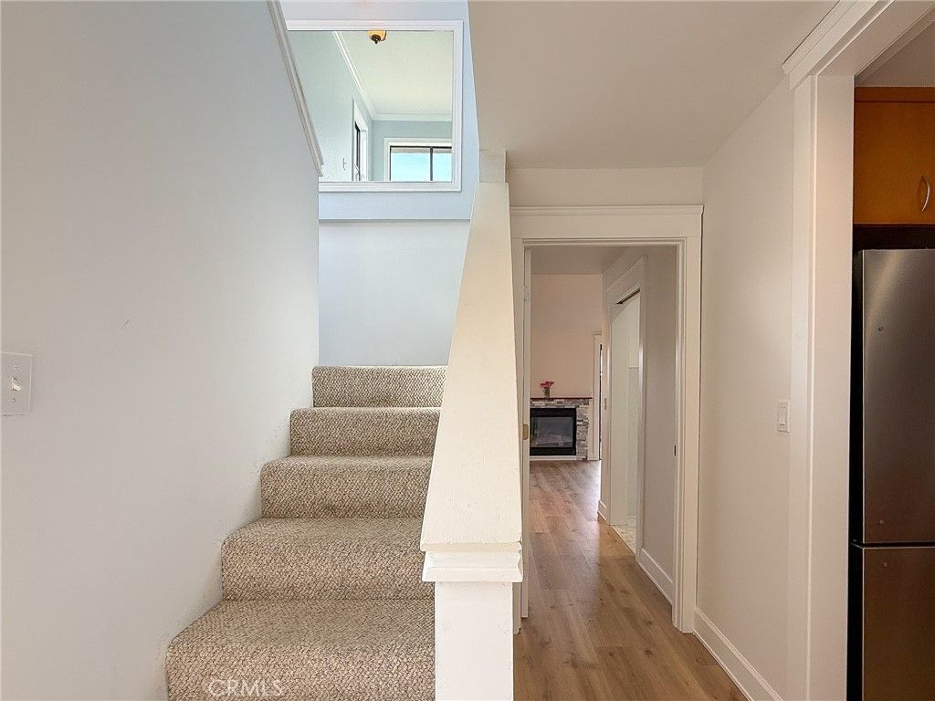 Just a few blocks from the beach in San Simeon, this end-unit condo offers a versatile layout with two bedrooms and two bathrooms along with peekaboo ocean views. The downstairs area may function as the main living room or as a private suite for an aging parent or guest. This level features new flooring, fresh interior paint, and includes a spacious room with an adjoining newly remodeled tiled bathroom with a roll-in shower, designed with ease of access in mind. The kitchen features a redesigned European-inspired, space-efficient design with an induction cooktop and compact dishwasher. Upstairs, you'll find two bedrooms and a full bathroom, offering comfortable separation and privacy. Attached single-car garage with washer and dryer included. Enjoy coastal living at the southern gateway to Big Sur, with hiking, biking, surfing, fishing, and dining just moments away.