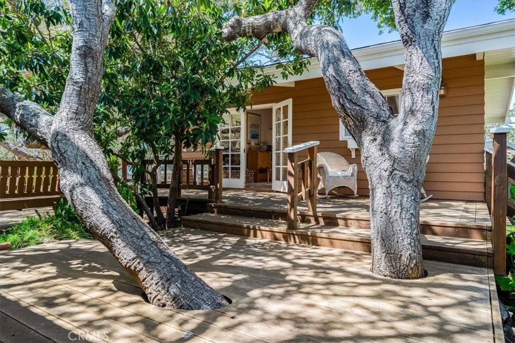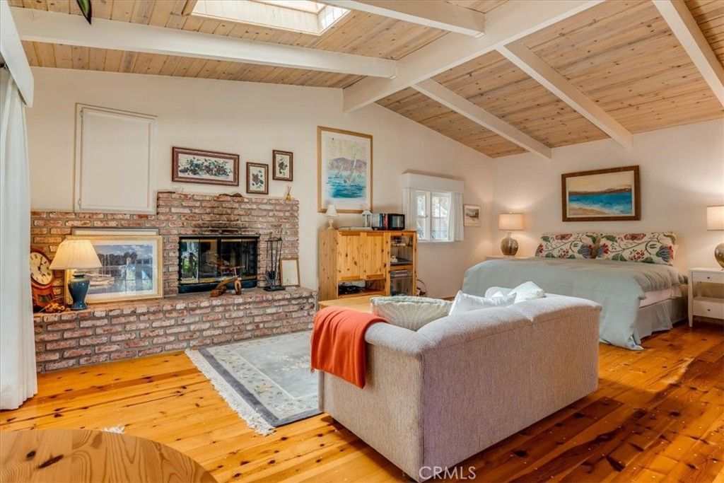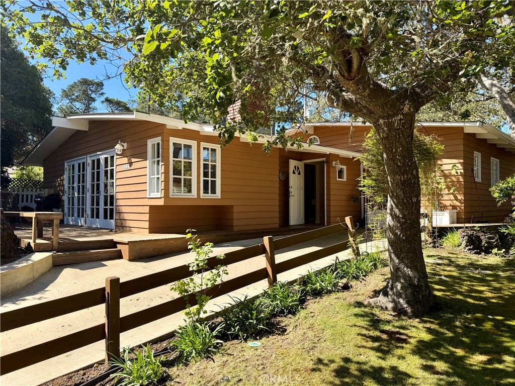 A rare offering in the heart of Cambria"”where charm, tranquility, and opportunity come together on an expansive, beautifully curated property. As you arrive, you're welcomed by a park-like front yard that immediately sets the tone. Lush with mature oak trees and flowering shrubs, this serene space invites you to slow down, sit awhile, and enjoy the quiet beauty and peaceful surroundings. Tucked away on a quiet, low-traffic street, this truly one-of-a-kind single-level home, originally built in 1966, exudes warmth and timeless appeal. Thoughtfully designed to embrace natural light and effortless indoor-outdoor living, the residence offers a peaceful retreat in an idyllic coastal setting. The main home features 3 bedrooms and 2 bathrooms, with an open-concept layout that seamlessly connects the kitchen, living, and dining areas into an inviting great room. Soaring ceilings with exposed beams and a skylight fill the space with natural light, all centered around a cozy wood-burning fireplace. Two sets of French doors open to the front patio, while each bedroom features its own French doors leading to an expansive back deck"”creating a seamless connection between the interior and the surrounding landscape. The ease of single-level living enhances comfort and accessibility, making this home ideal for a wide range of lifestyles"”from full-time coastal living to a peaceful weekend retreat. Just beyond the deck, a charming detached guest cottage offers exceptional flexibility, complete with a kitchenette, ¾ bathroom and its own wood-burning fireplace. Perfect for hosting guests, extended stays or potential rental income, this private retreat adds both value and versatility. Adding to the property's appeal, the adjacent 5,250 sq ft lot is included in the sale, bringing the total property size to an impressive 12,250 sq ft. Whether you envision expanding the gardens, creating additional outdoor living spaces or exploring future possibilities, the opportunity here is rare. From arrival to exploration, there is a sense of calm and welcome that makes this home unforgettable. A true Cambria gem, offering space, privacy and endless potential in a setting that feels worlds away.