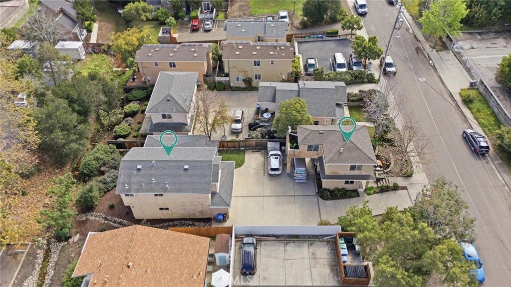 Versatile investment opportunity in a desirable San Luis Obispo location "” two separate detached homes on an R2-zoned lot totaling 8,642 sq ft. Whether you're an investor, a buyer looking to live in one unit while offsetting your mortgage with the other, or someone in need of flexible multi-generational housing, this property delivers options. 3200 Rockview Place - Front Home | 952 Sq Ft This charming two-story home features a one-bedroom suite and full bathroom on the lower level, complete with laundry hookups. The upper level opens to a bright space with a combined living room, dining area, and kitchen, plus a convenient half bath. Step through the sliding glass door onto the private upper balcony. A covered carport sits beneath the balcony, with additional street parking available. A welcoming front patio provides views of the South Hills. 3202 Rockview Place - Back Home | 1,501 Sq Ft Head down the driveway to this two-story, 3-bedroom + office/den that's being used as a 4th bedroom, 2.5-bathroom home with a 2-car garage and two additional off-street parking spaces. The main level features open-concept living with a kitchen, dining, and living area. Office/den and half bath are also on the main level, along with a laundry room and garage access. Slide open the glass door to a concrete patio overlooking a seasonal creek. Upstairs, the primary suite with full bathroom is joined by two additional bedrooms and a second full bathroom. Both homes are fully landscaped and currently tenant-occupied "” please do not disturb occupants. Conveniently located with easy access to Broad Street and the heart of downtown SLO. The neighboring property at 3204 Rockview Place is also available for sale, presenting a rare opportunity to expand your portfolio further. Information deemed reliable but not verified. Buyer to verify all details.